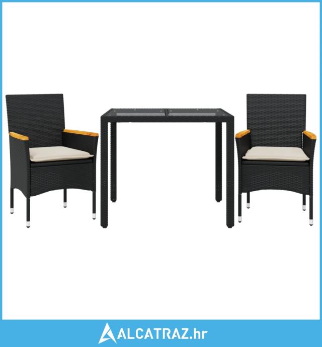 3-dijelni vrtni blagovaonski set s jastucima poliratan i staklo - NOVO
