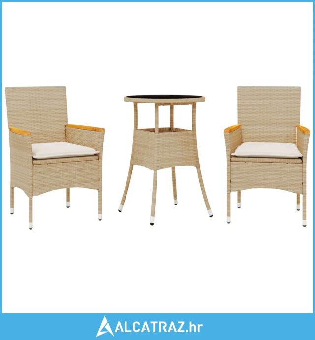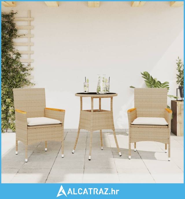 3-dijelni vrtni blagovaonski set s jastucima poliratan i staklo - NOVO