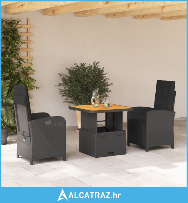 3-dijelni vrtni blagovaonski set s jastucima od poliratana crni - NOVO