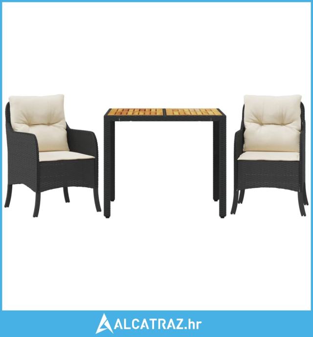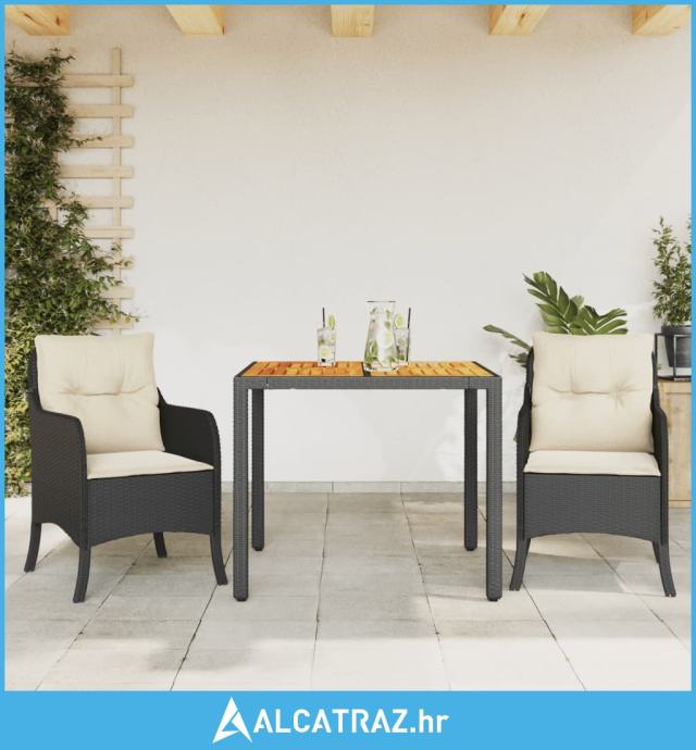 3-dijelni vrtni blagovaonski set s jastucima od poliratana crni - NOVO