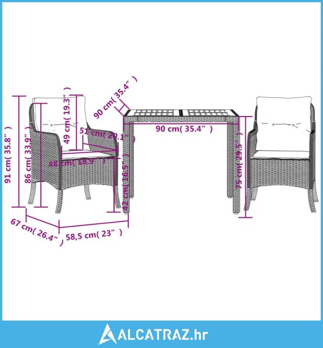 - Dimenzije: 90 x 90 x 75 cm (D x Š x V)