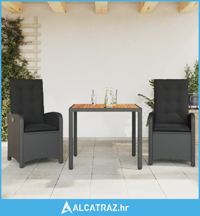 3-dijelni vrtni blagovaonski set s jastucima od poliratana crni - NOVO