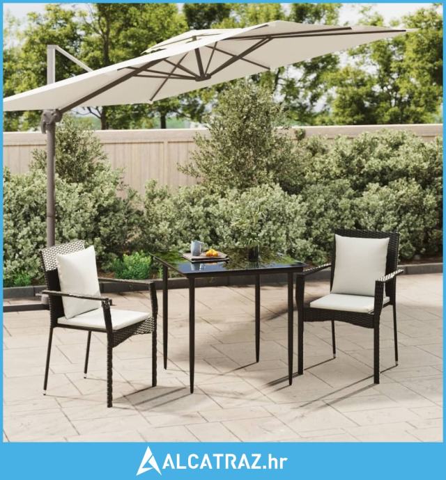 3-dijelni vrtni blagovaonski set s jastucima od poliratana crni - NOVO