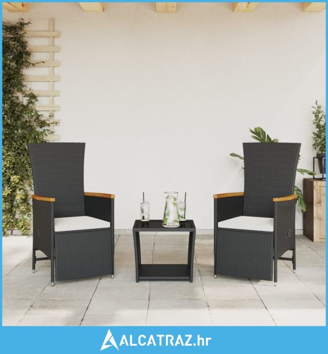 3-dijelni vrtni blagovaonski set s jastucima od poliratana crni - NOVO