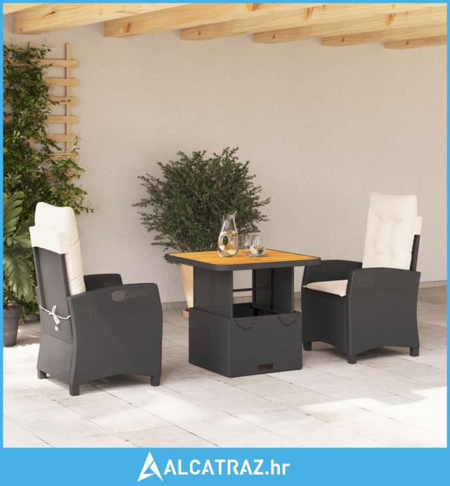 3-dijelni vrtni blagovaonski set s jastucima od poliratana crni - NOVO