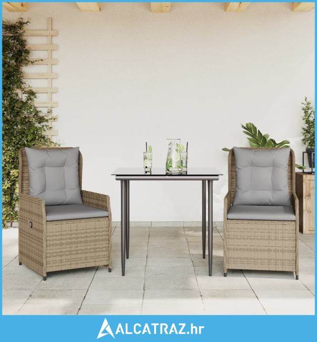3-dijelni vrtni blagovaonski set od poliratana s jastucima bež - NOVO