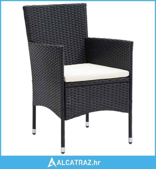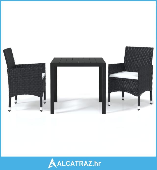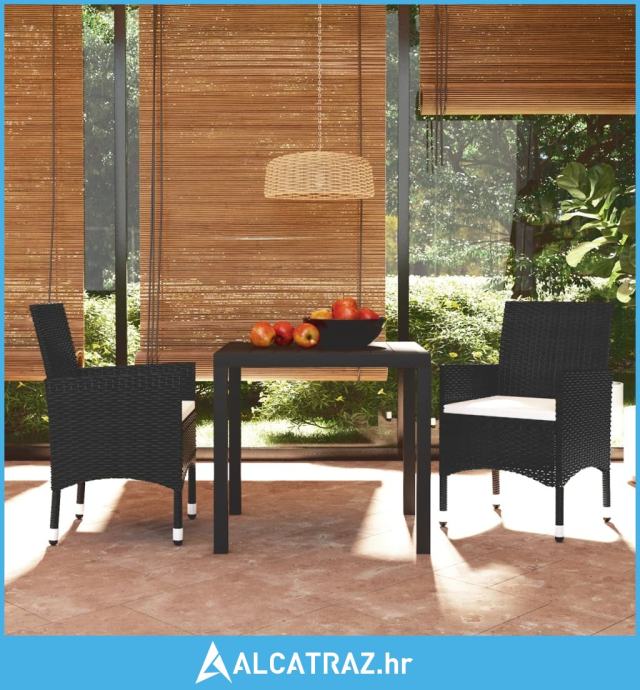 3-dijelni vrtni blagovaonski set od poliratana s jastucima crni - NOVO