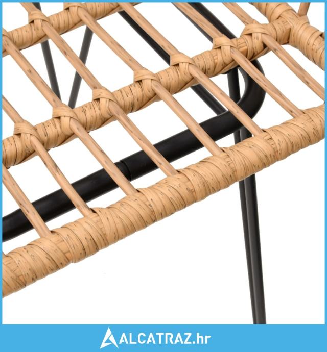 - Izdržljiv materijal: PE ratan, poznat i kao poliratan, otporan je na vremenske uvjete i lako se čisti. Dugo ostaje lijep izvana. Nudi odličnu kvalitetu, praktičnost i estetski izgled.