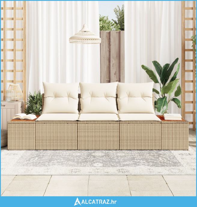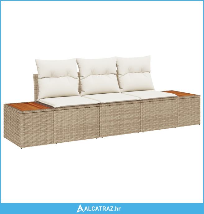 3 Dijelni Vrtni Kauč Set S Jastučićima Bež Poli Ratan Akacija - NOVO