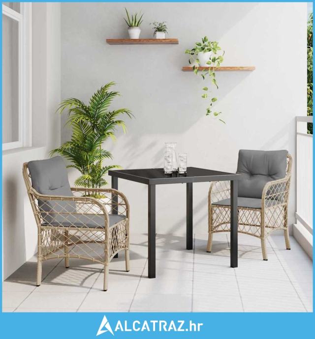 3-dijelni vrtni set za objedovanje s jastučićima bež poliratan - NOVO