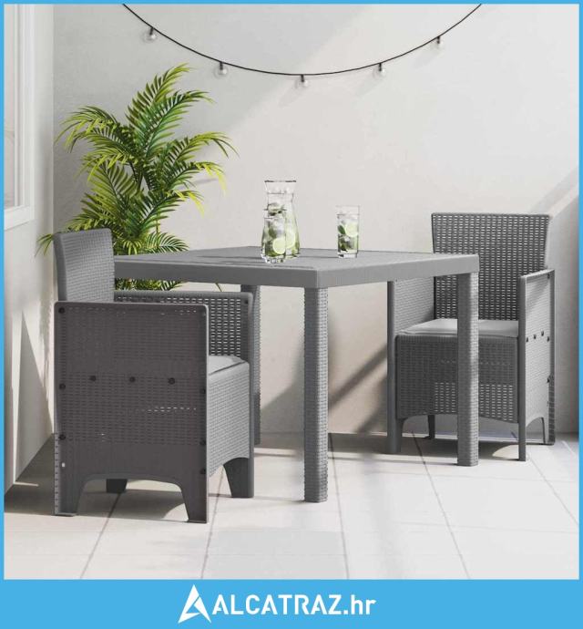 Ovaj prekrasni vrtni trpezarijski set je baš ono što ti treba za balkon. Ima lijep moderan izgled i stvarno je funkcionalan. Napravljen od izdržljivog polipropilena, uključuje pravokutni stol i dvije udobne stolice bez naslona, savršene za malo vanjsko okupljanje.