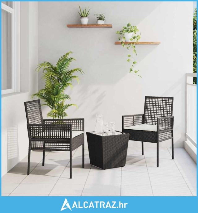 3-komponentni vrtni bistro set s jastučićima crni poli ratan - NOVO