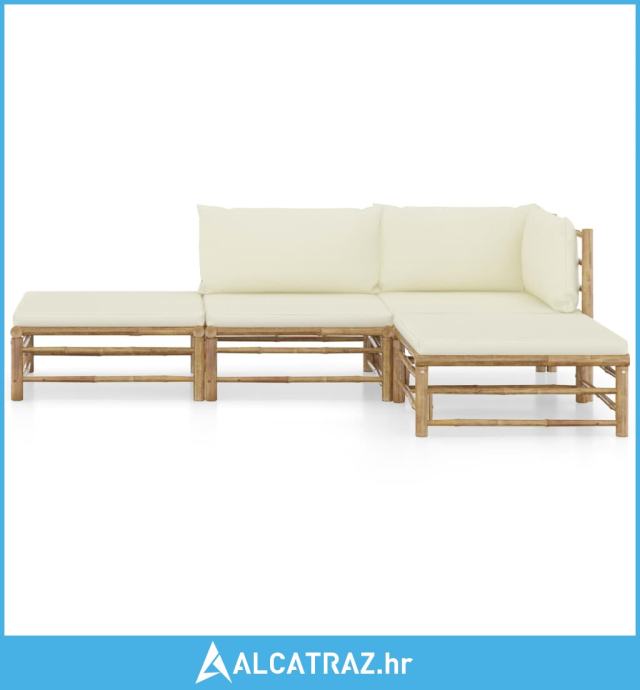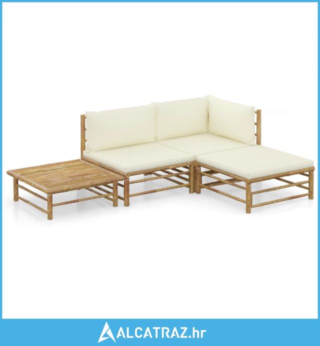 4-dijelna vrtna garnitura od bambusa s krem bijelim jastucima - NOVO