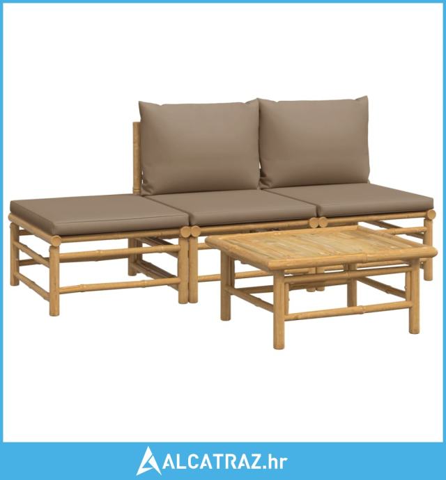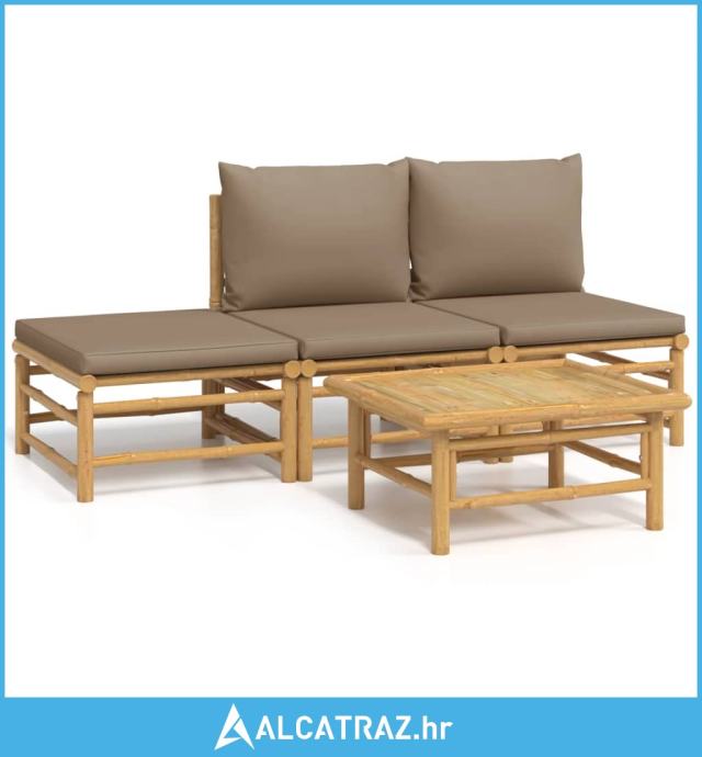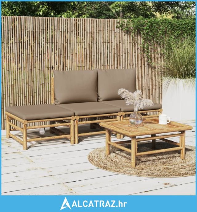 4-dijelna vrtna garnitura od bambusa sa smeđesivim jastucima - NOVO