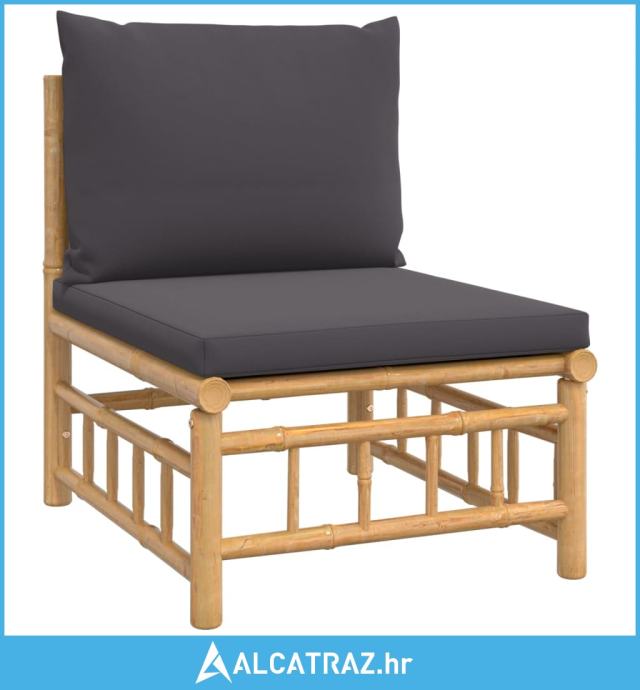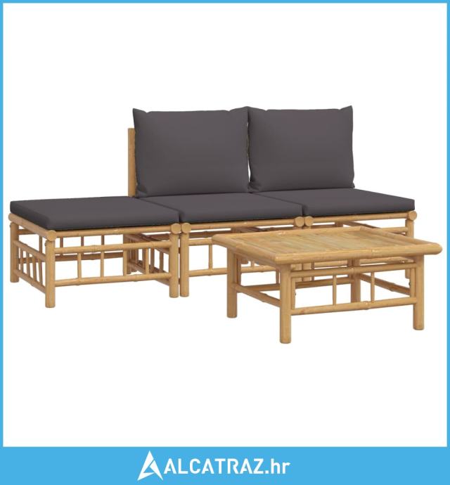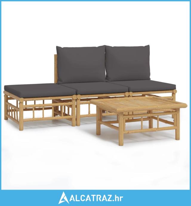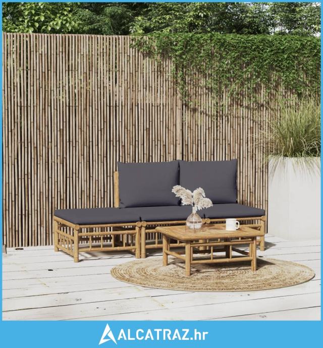 4-dijelna vrtna garnitura od bambusa s tamnosivim jastucima - NOVO