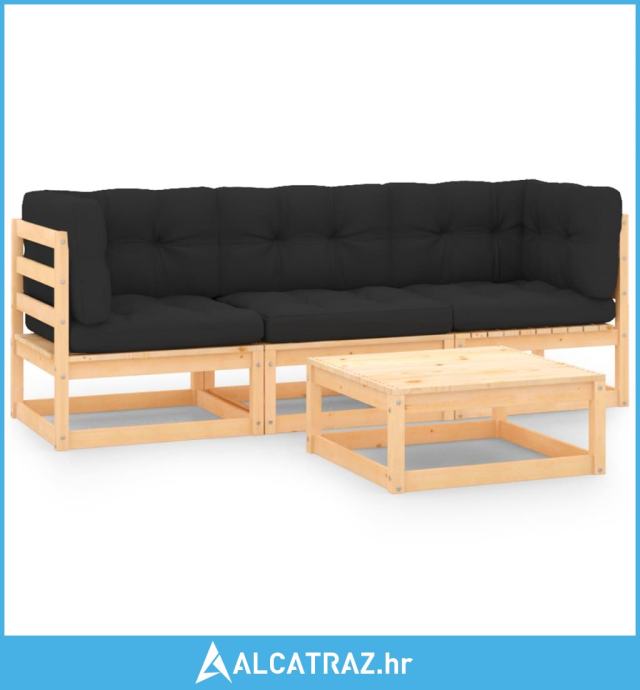 4-dijelna vrtna garnitura od masivne borovine s jastucima - NOVO