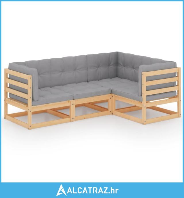 4-dijelna vrtna garnitura od masivne borovine s jastucima - NOVO