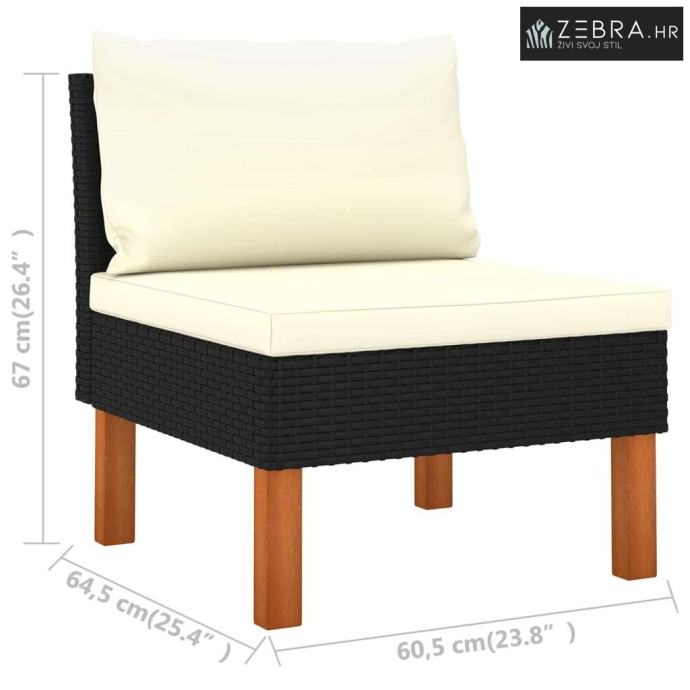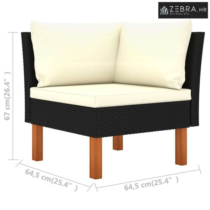 4-dijelna vrtna garnitura od poliratana s jastucima crna - Crna 1 Sred