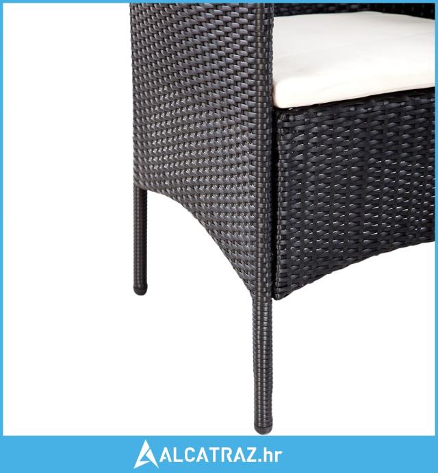 Ova garnitura od poliratana, koja se sastoji od 1 dvosjeda, 2 fotelje, 1 stolića za kavu i 3 jastuka za sjedalo, pružit će elegantan prostor za sjedenje za vaš vrt ili terasu.
