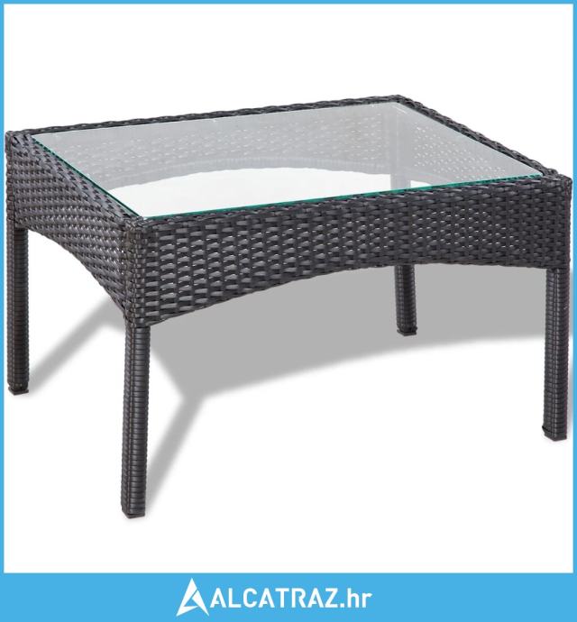- Materijal: Ratan od PE-a (polietilena) + okvir od čelika obloženog prahom + staklena površina stola