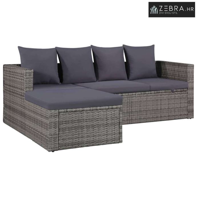 4-dijelna vrtna garnitura od poliratana s jastucima siva - Siva 4