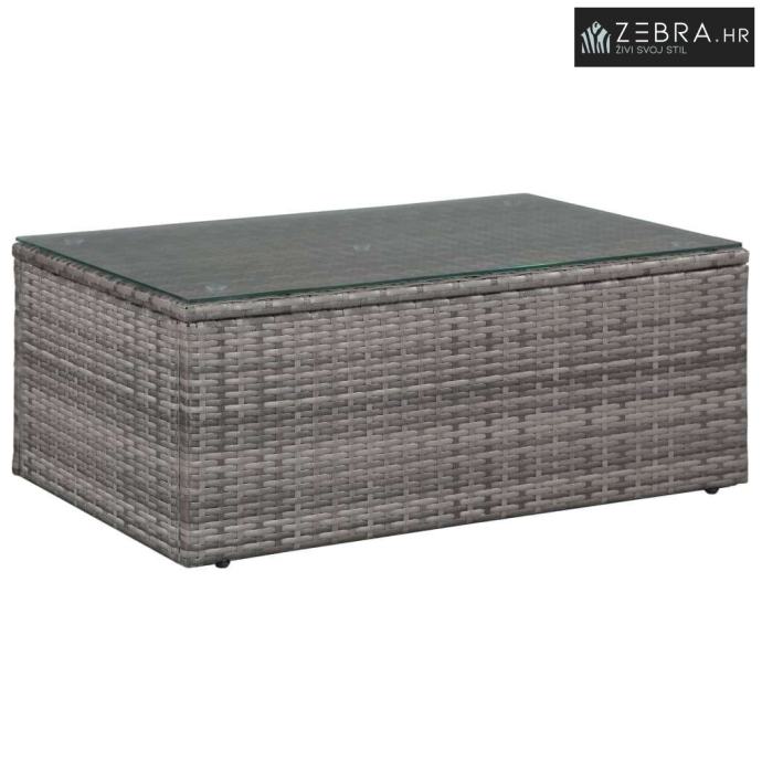 Materijal: Ratan od PE-a (polietilena) + okvir od čelika obloženog prahom + staklena površina stola