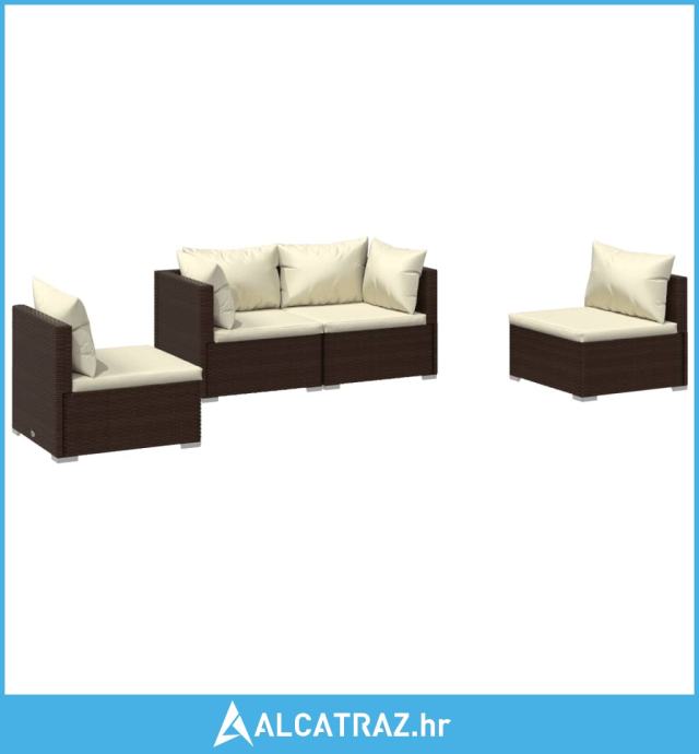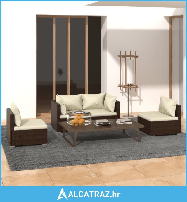 4-dijelna vrtna garnitura od poliratana s jastucima smeđa - NOVO