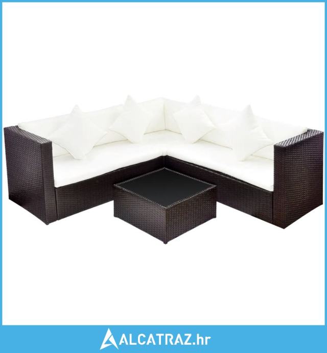 4-Dijelna vrtna garnitura od poliratana s jastucima smeđa - NOVO