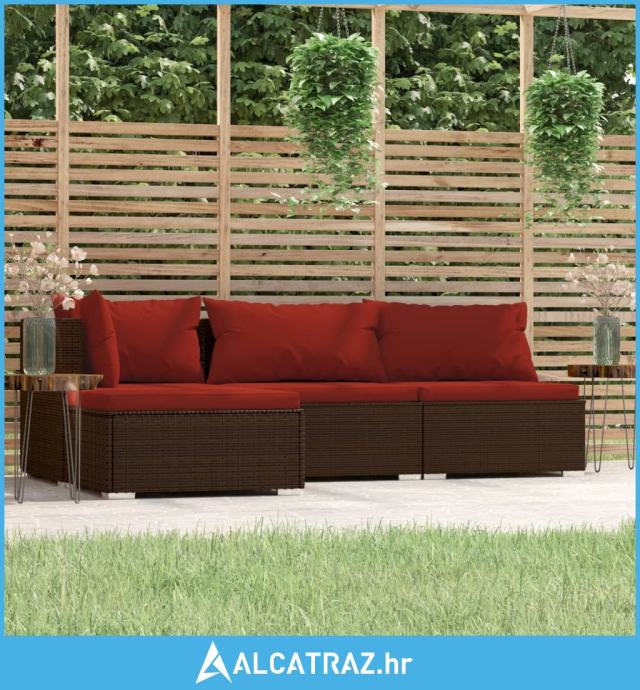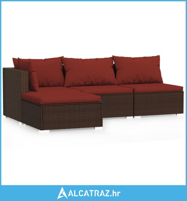 4-dijelna vrtna garnitura od poliratana s jastucima smeđa - NOVO