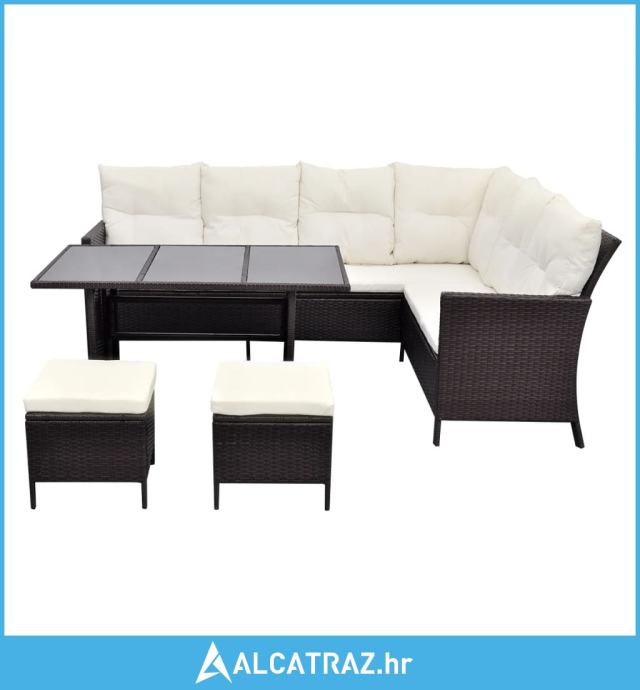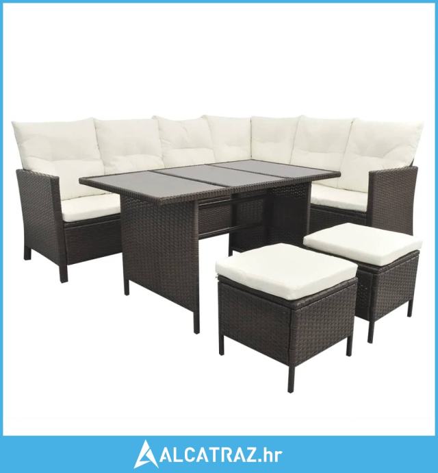 4-dijelna vrtna garnitura od poliratana s jastucima smeđa - NOVO