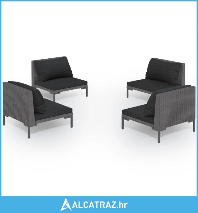 4-dijelna vrtna garnitura od poliratana s jastucima tamnosiva - NOVO