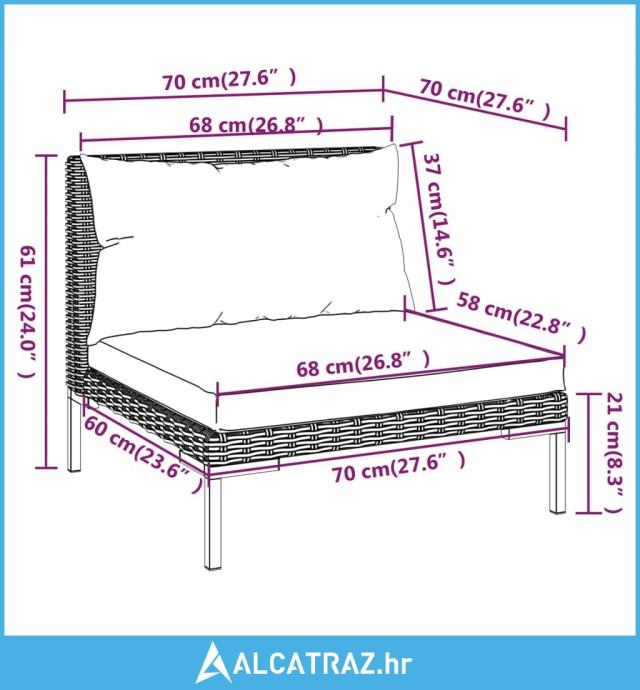 - Dimenzije (svake): 70 x 70 x 61 cm (Š x D x V)