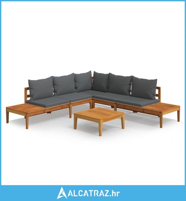 4-dijelna vrtna garnitura s tamnosivim jastucima bagremovo drvo - NOVO