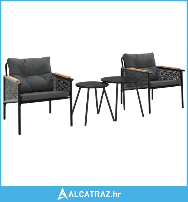 4-dijelni set balkonskog namještaja s jastucima crni čelični - NOVO