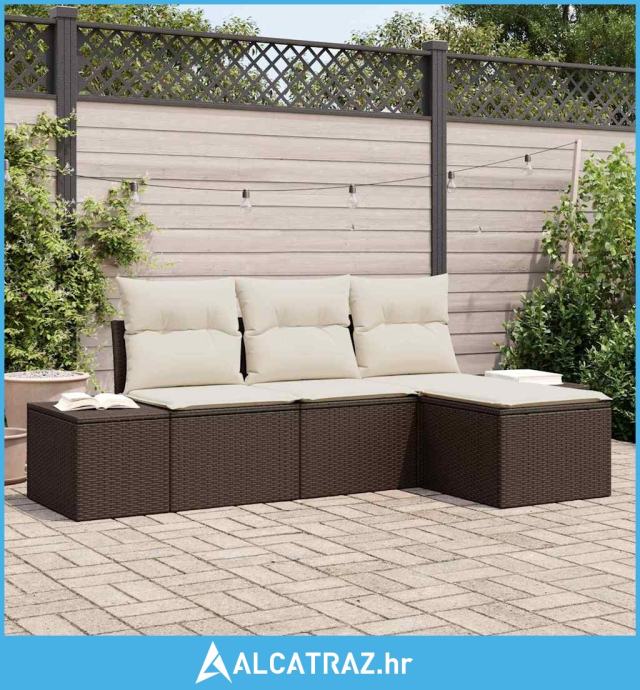 4-dijelni set vrtnih kauča s jastučićima smeđeg poli ratana - NOVO