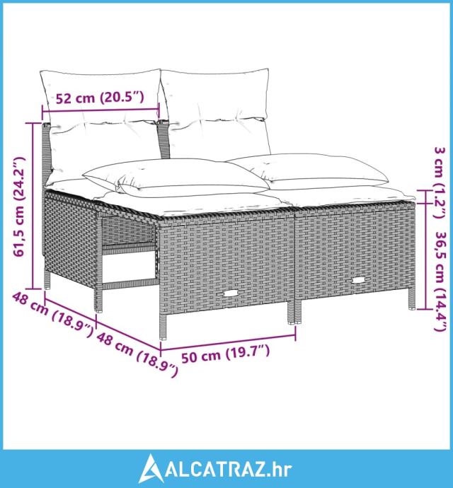 - Dimenzije vrtne sofe (svaka): 52 x 48 x 61,5 cm (Š x D x V)