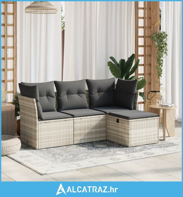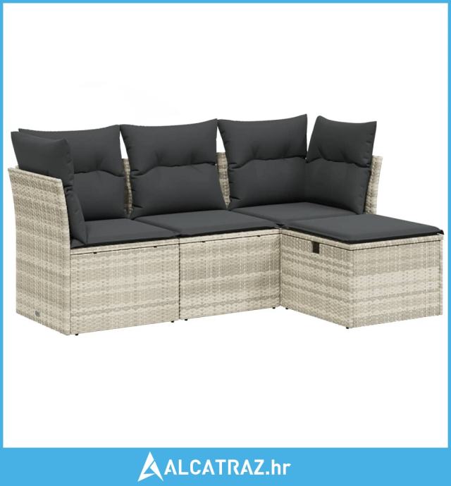4-dijelni set vrtnih sofa s jastucima svijetlosivi poliratan - NOVO