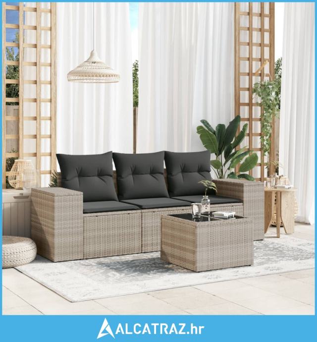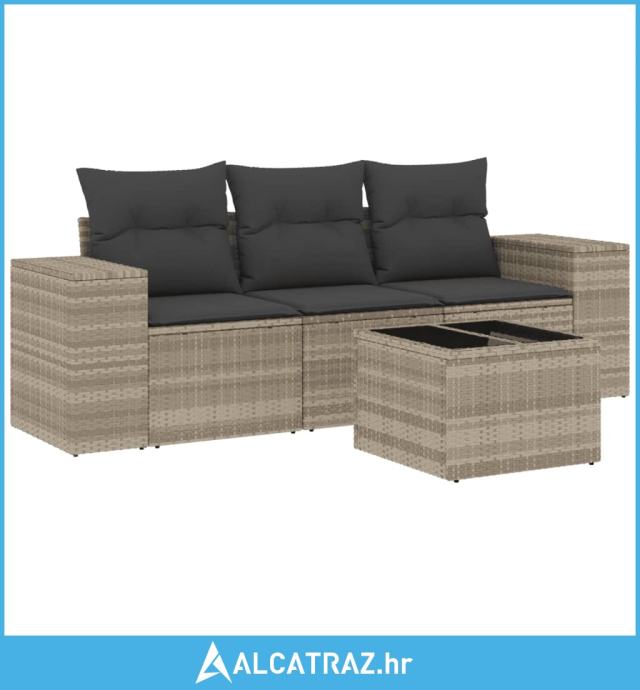 4-dijelni set vrtnih sofa s jastucima svijetlosivi poliratan - NOVO