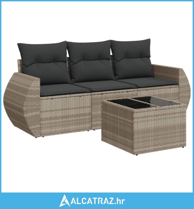 4-dijelni set vrtnih sofa s jastucima svijetlosivi poliratan - NOVO