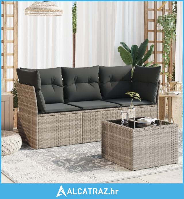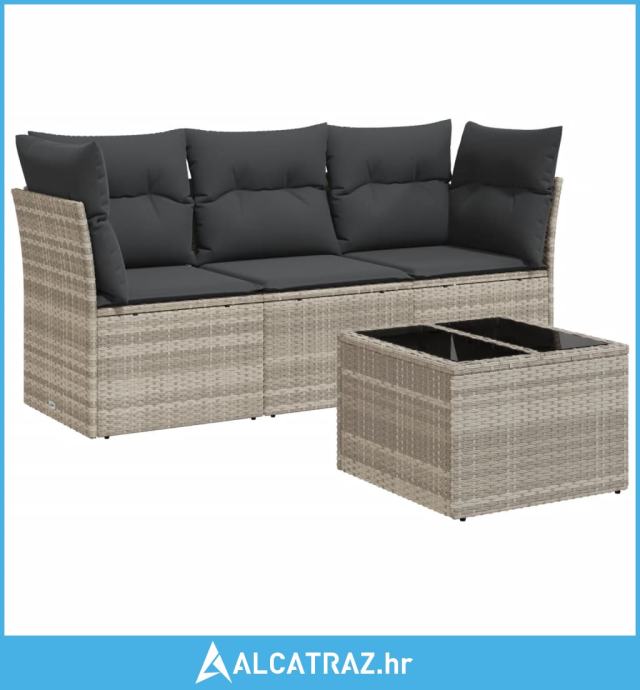 4-dijelni set vrtnih sofa s jastucima svijetlosivi poliratan - NOVO