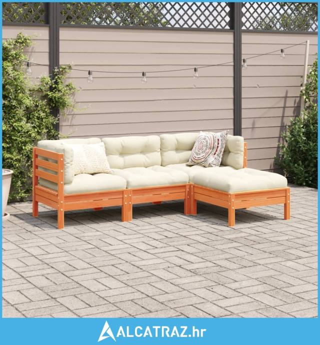 4-dijelni set vrtnih sofa s jastucima voštano smeđi od borovine - NOVO