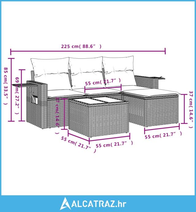 - Dimenzije jastuka za naslon: 55 x 45 x 13 cm (D x Š x Deb.)
