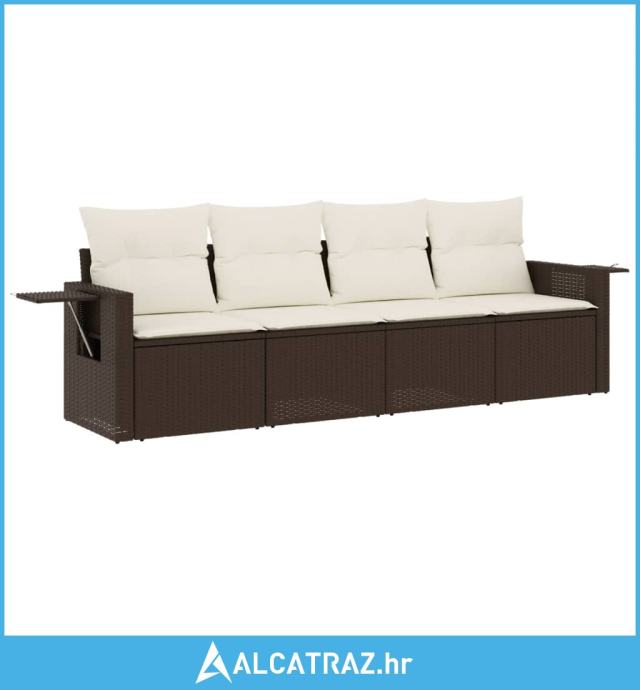4-dijelni set vrtnih sofa od poliratana s jastucima smeđi - NOVO