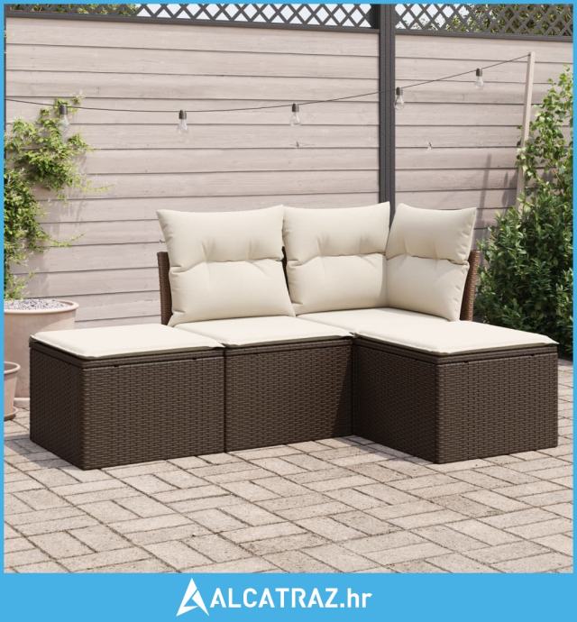 4-dijelni set vrtnih sofa od poliratana s jastucima smeđi - NOVO