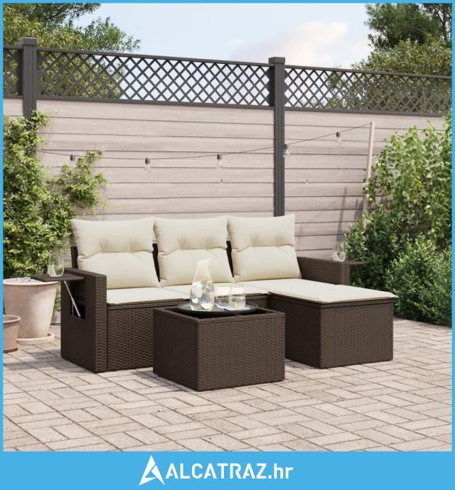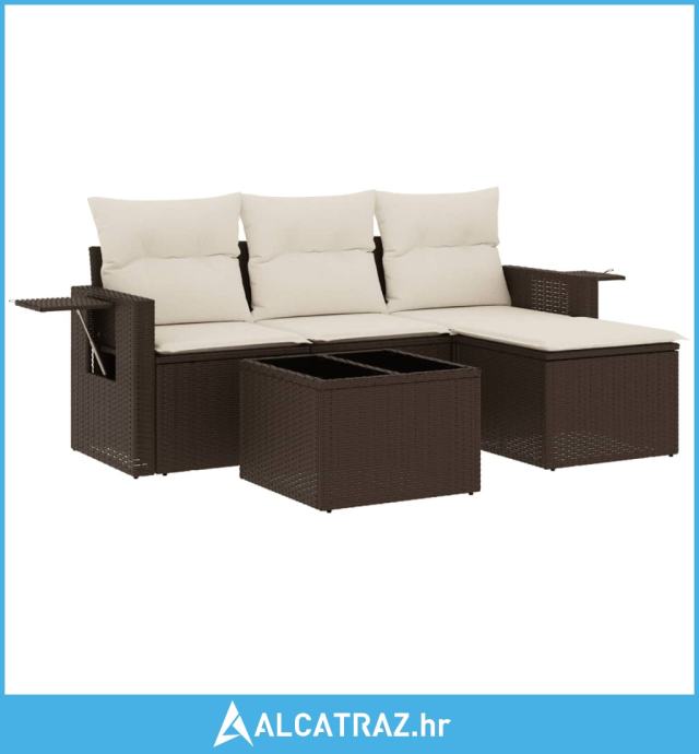 4-dijelni set vrtnih sofa od poliratana s jastucima smeđi - NOVO