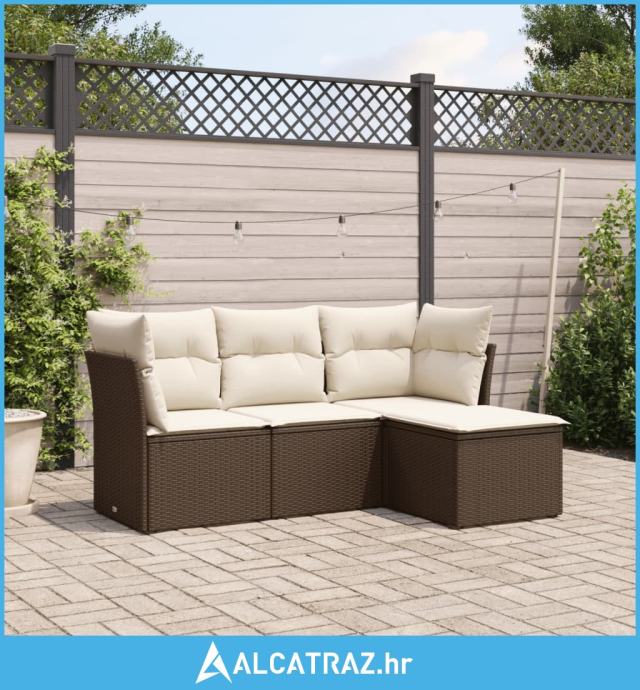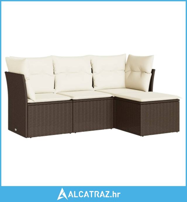 4-dijelni set vrtnih sofa od poliratana s jastucima smeđi - NOVO
