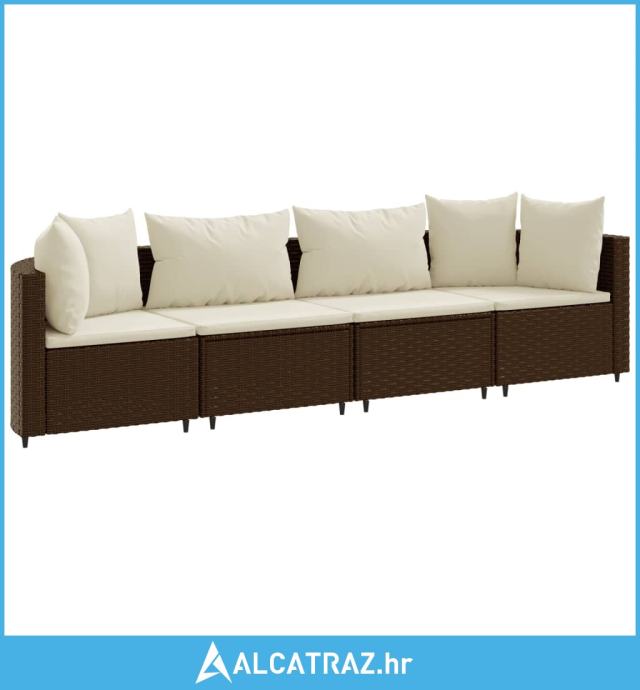 4-dijelni set vrtnih sofa od poliratana s jastucima smeđi - NOVO