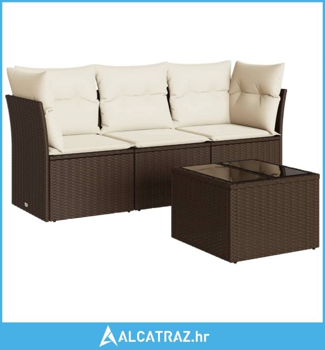 4-dijelni set vrtnih sofa od poliratana s jastucima smeđi - NOVO