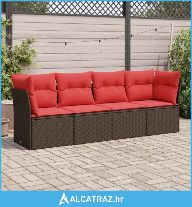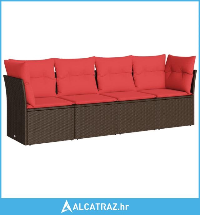 4-dijelni set vrtnih sofa od poliratana s jastucima smeđi - NOVO