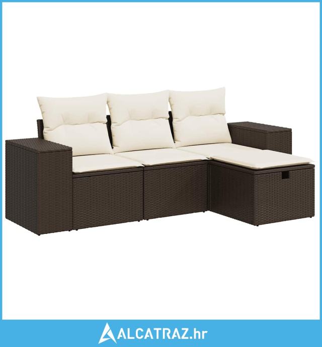 4-dijelni set vrtnih sofa od poliratana s jastucima smeđi - NOVO